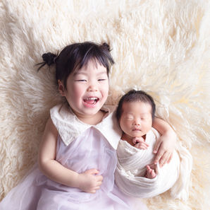 お兄ちゃんお姉ちゃんは、年齢によってなかなか撮影できないこともあります。その場合は、赤ちゃんのみの撮影になることもありますので、ご了承ください。(その場合は8のファーの上でおくるみポーズになります)